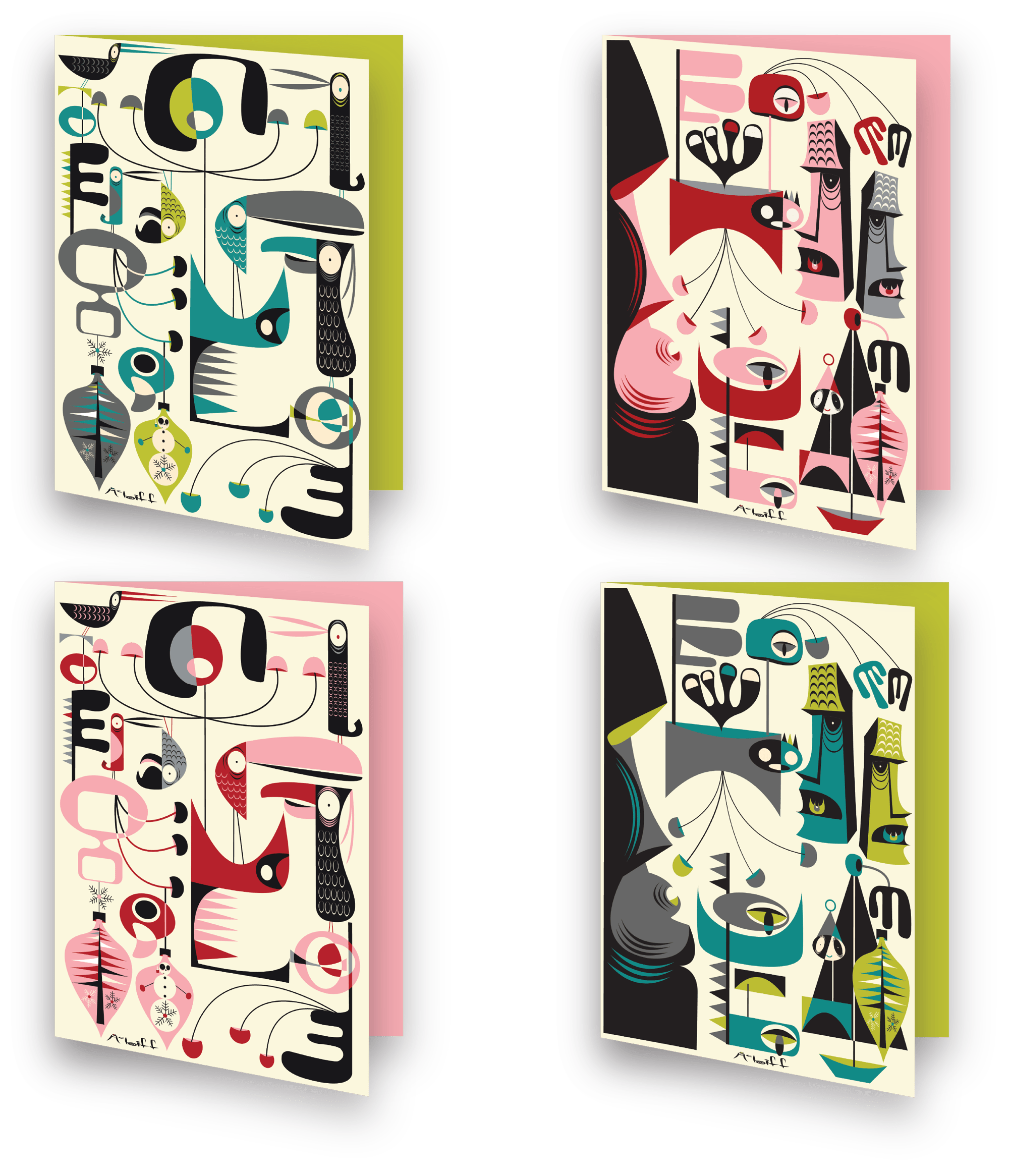 ABSTRACTIKI CHRISTMAS CARD SET. 12 CARDS IN SET.